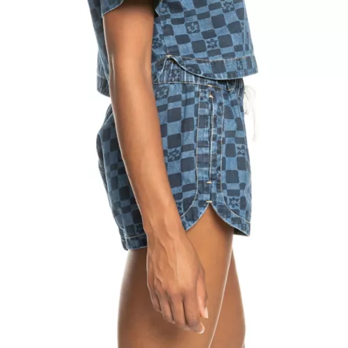 Made of lightweight denim with a tonal checker print, these comfy shorts have a relaxed fit with pockets and a drawcord waistband. A perfect compliment to your warm-weather style.